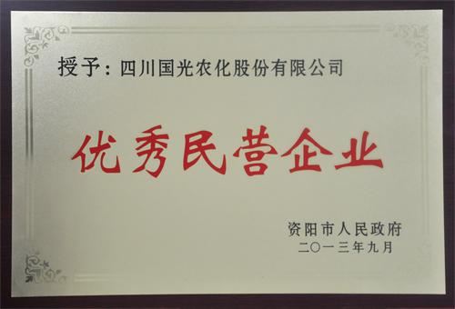 為表?yè)P(yáng)先進(jìn),樹(shù)立典型,做大做強(qiáng)民營(yíng)企業(yè),推動(dòng)民營(yíng)經(jīng)濟(jì)大發(fā)展、大提高,資陽(yáng)市人民政府于2013年9月29日召開(kāi)會(huì)議,對(duì)四川國(guó)光農(nóng)化股份有限公司等20戶“優(yōu)秀民營(yíng)企業(yè)”予以表彰。 同時(shí),會(huì)議要求各級(jí)各部門解放思想、更新觀念,保證民營(yíng)企業(yè)依法平等使用生產(chǎn)要素、公平參與市場(chǎng)競(jìng)爭(zhēng)、同等受到法律保護(hù),進(jìn)一步激發(fā)民營(yíng)經(jīng)濟(jì)的創(chuàng)造活力和巨大潛力,把民營(yíng)經(jīng)濟(jì)打造為資陽(yáng)市經(jīng)濟(jì)增長(zhǎng)的主體力量。